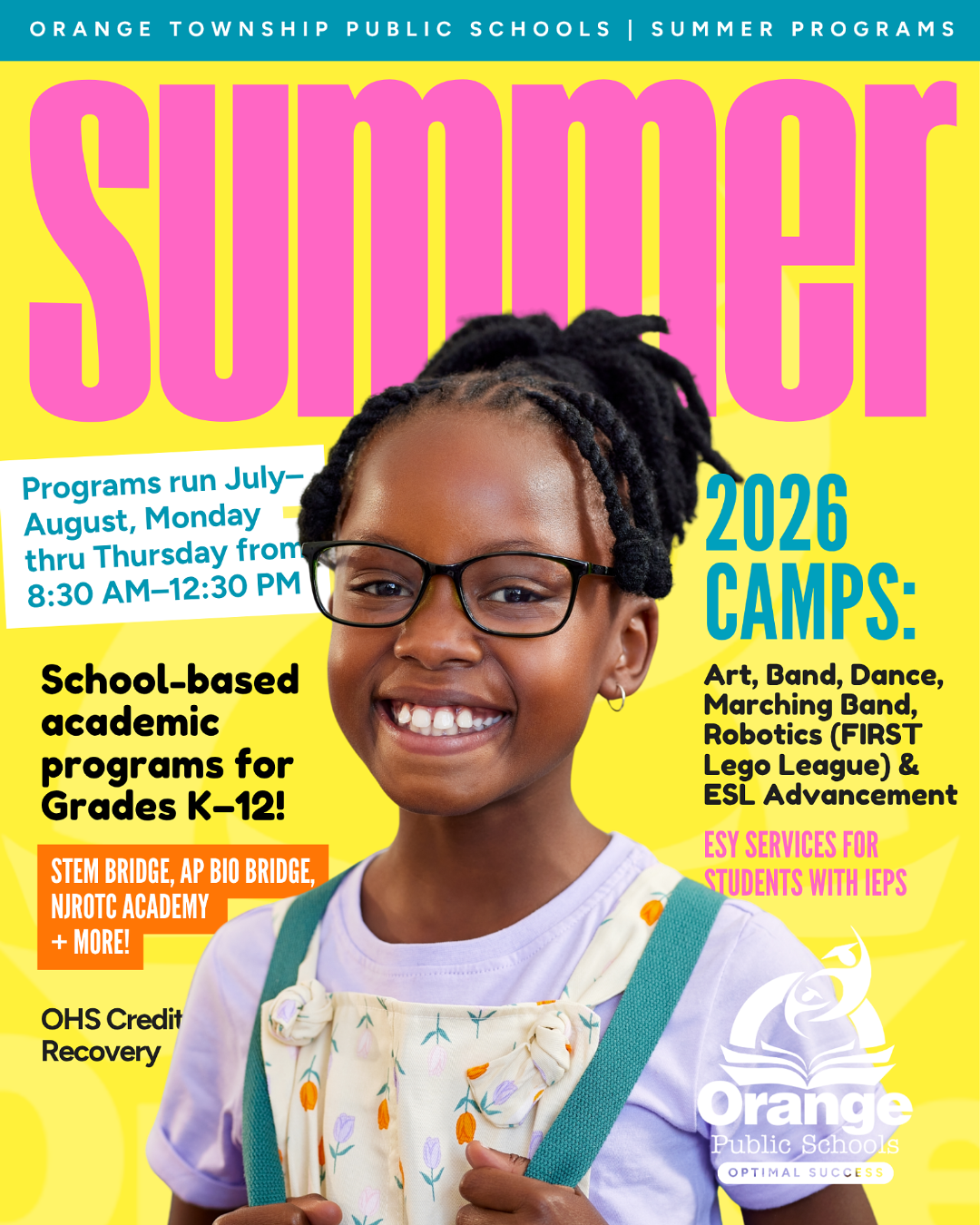 Orange Public Schools is going ALL OUT this summer with a full lineup of programs for our students...🧡 Academic programs at select schools🧡 Camps in Art, Band, Dance, Robotics & more!🧡 Credit r...
